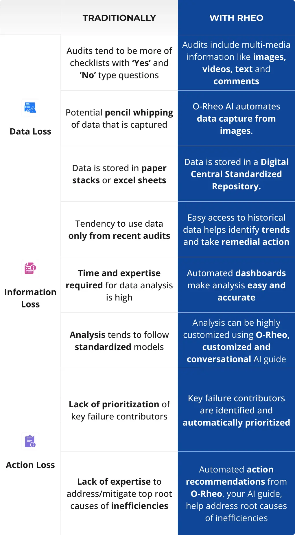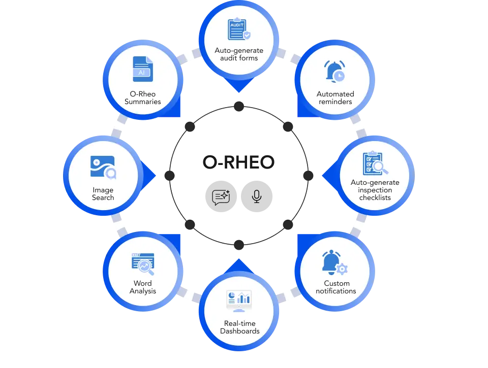 Rheo's AI oracle, O-Rheo can accelerate workflows in critical functions like Quality, Safety, Maintenance and Production with automated actions that can save critical time and effort spent on non-value-added tasks.